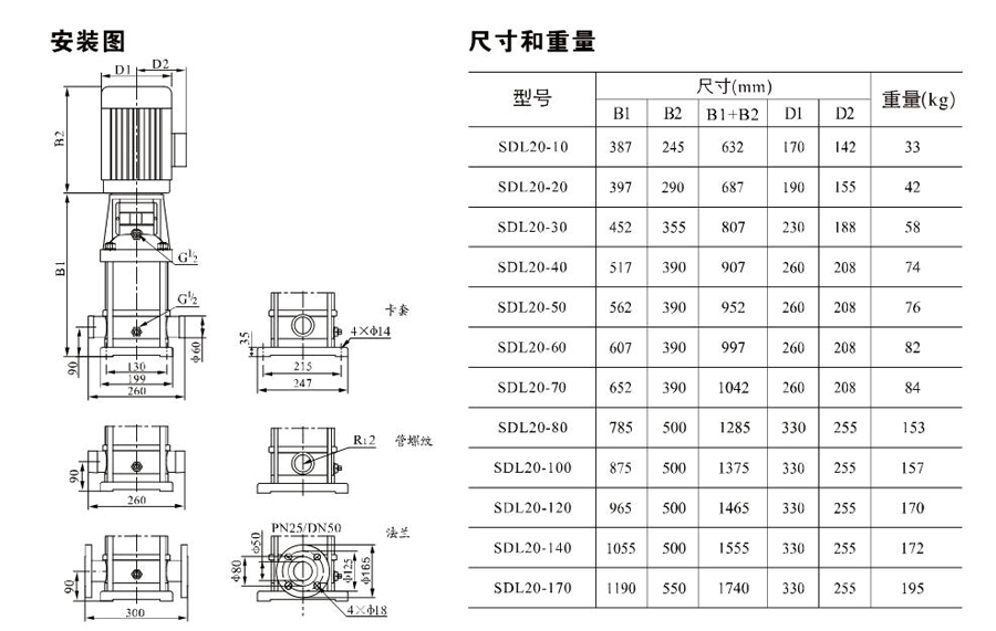 SDL20/SDLT20為配用標(biāo)準(zhǔn)電機(jī)的非自吸立式多級(jí)離心泵,電機(jī)軸和泵軸用聯(lián)軸器直接聯(lián)接,把拉桿用螺母將外筒,過(guò)流部件固定在支架和進(jìn)出水體之間,泵進(jìn)出水口在泵底部的同一直線上。泵可根據(jù)需要配置智能保護(hù)器,對(duì)泵的干轉(zhuǎn)、缺相、過(guò)載等進(jìn)行有效的保護(hù)。