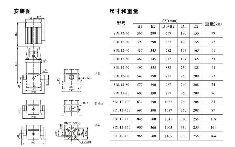 南元SDL12/SDLT12立式多級離心泵有不同的泵規(guī)格和不同級數(shù),以滿足所需的流量和壓力。