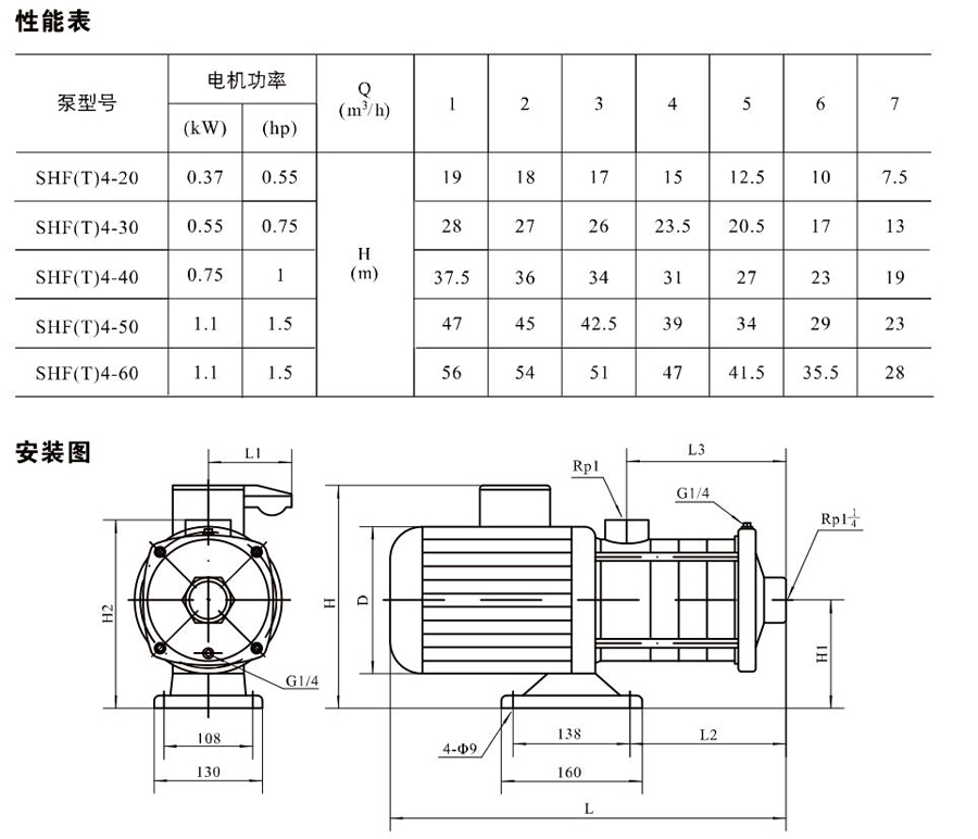 SHL/SHF/SHFT4為臥式多級非自吸多級離心泵,配加長軸電機。緊湊式結(jié)構(gòu)使泵尺寸很小,軸向入口或徑向出口。