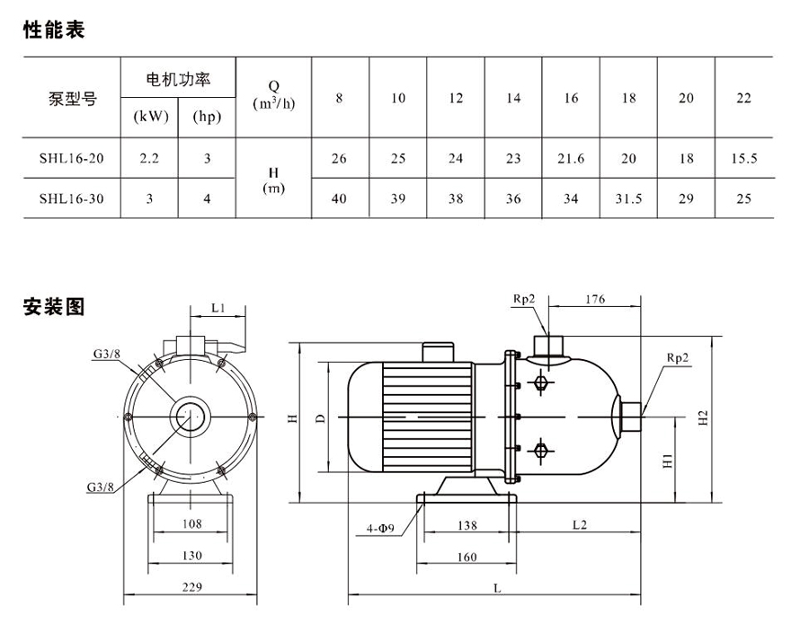 SHL/SHF/SHFT16為臥式多級非自吸多級離心泵,配加長軸電機。緊湊式結構使泵尺寸很小,軸向入口或徑向出口。