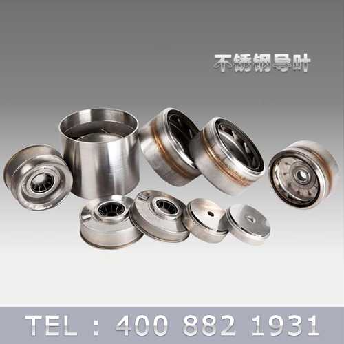 導葉按其結構形式可分為徑向式導葉和流道式導葉。流道式導葉的正向導葉和反向導葉是鑄在一起的,中間有一連續流道,使液體在連續的流道內流動,不易形成死角和突然擴散,速度變化比較均勻,水力性能較好,但結構復雜,制造工藝性差。